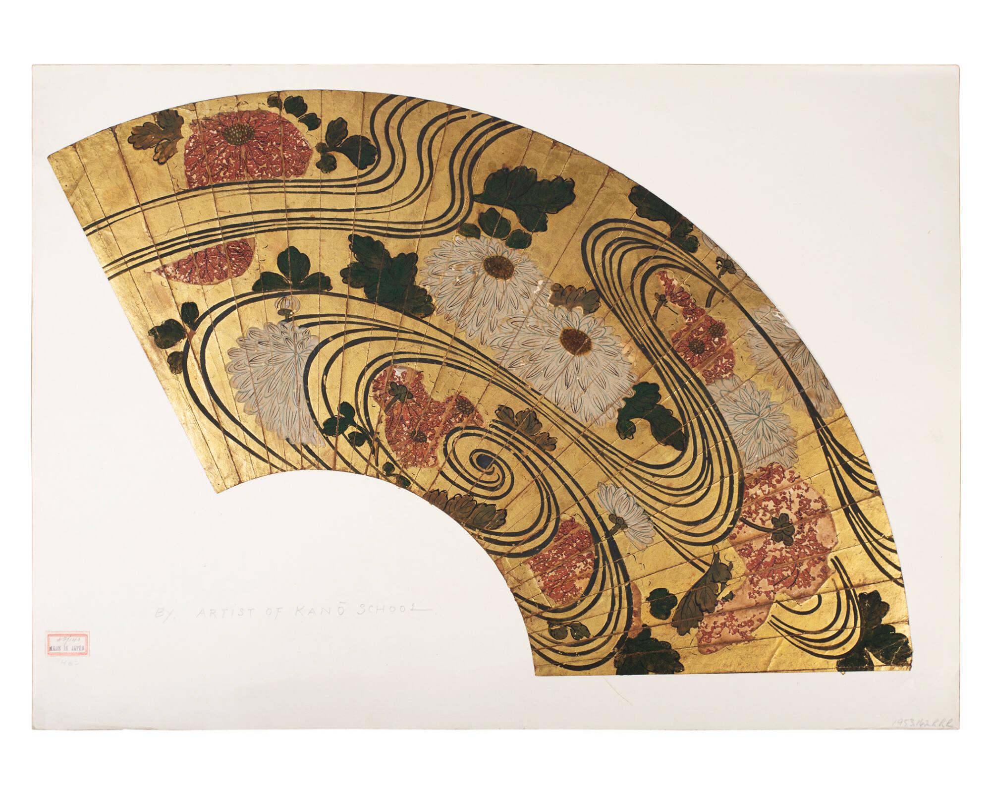 Fan Painting: Stream and Lotus design