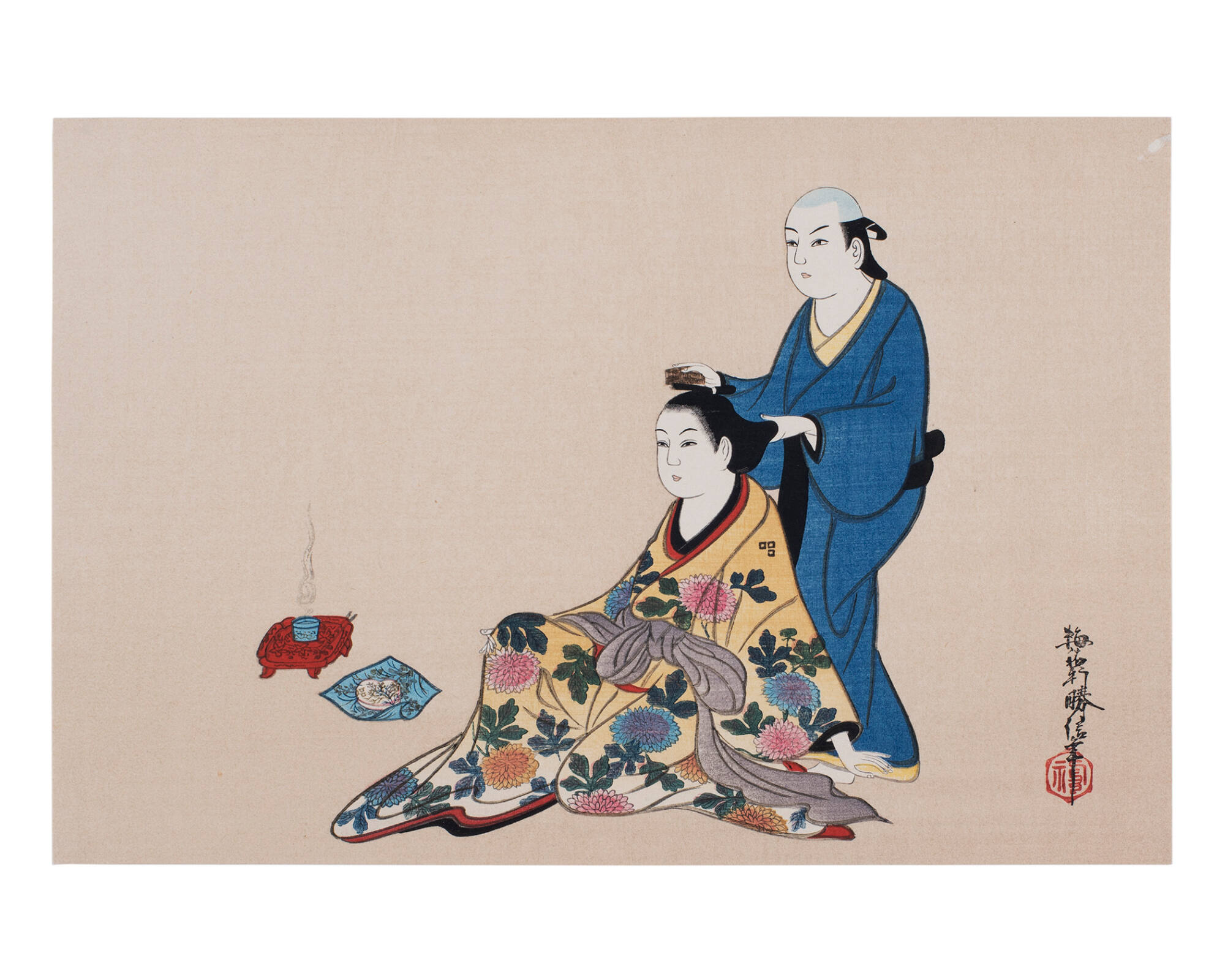 DescriptionSeated woman and servant.