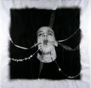 Label TextLanguage is the touchstone, the pivot point of all my work. Lesley Dill visualizes how we use language to declare our identities. In A Mouthful of Words, she strings ribbons and cut-out paper strands of Emily Dickinson’s (1830–1886) poetry from the mouth of a young man—is he releasing them or choking on them? We can make out only random words and phrases (“room it seems,” “poverty”), which suggests the inadequacy of language as a means of self-expression. Dill also emphasizes the instability of language by sewing on threads leading from the ribbons so that the words themselves seem to be unraveling. This work is a result of collaboration between Dill and University of Memphis student volunteers who posed for a series of photographs for Dill. The photographer was David Horan.Published ReferencesA Mouthful of Words (Memphis, 1997) Princenthal, Nancy, "Word of Mouth: Leslie Dill’s Work on Paper," On Paper 2, no.4 Mar-Apr. 1998Exhibition HistoryLesley Dill: a Mouth Full of Words, Art Museum, University of Memphis, 1997 Lesley Dill: In Black and White, George Adams Gallery, New York 1997 TMA New Acquisitions in Graphic Arts, Dec. 21, 2001-March 30, 2002; TMA, Word Play (October 16, 2009- February 7, 2010)Membership