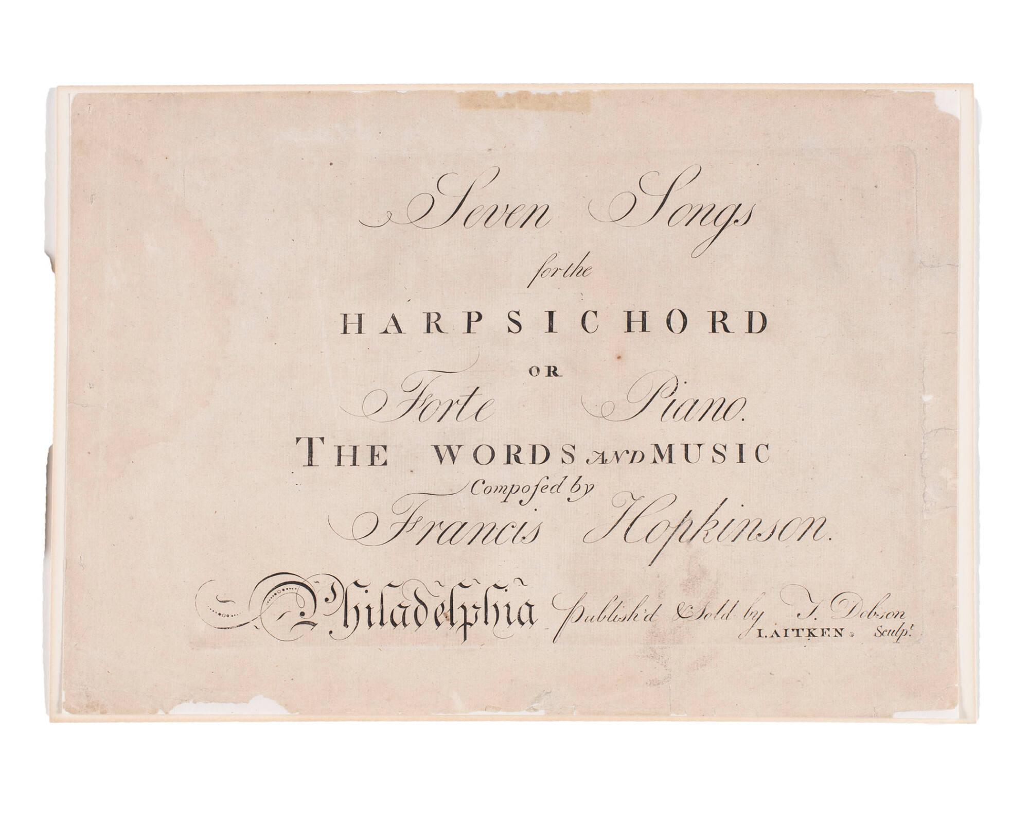 Seven Songs for the Harpsichord, composed by Francis Hopkinson, Printed by I. Aitken