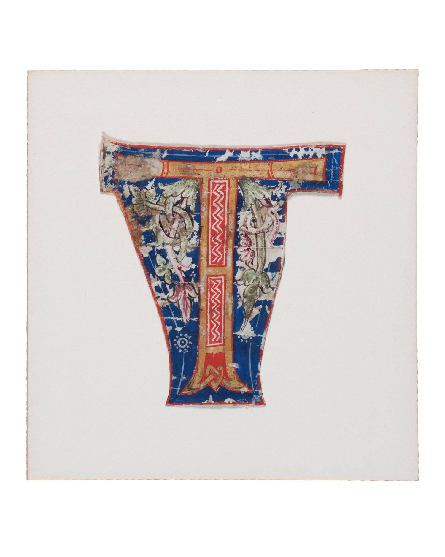 Illuminated Manuscript cutting, decorated initial T