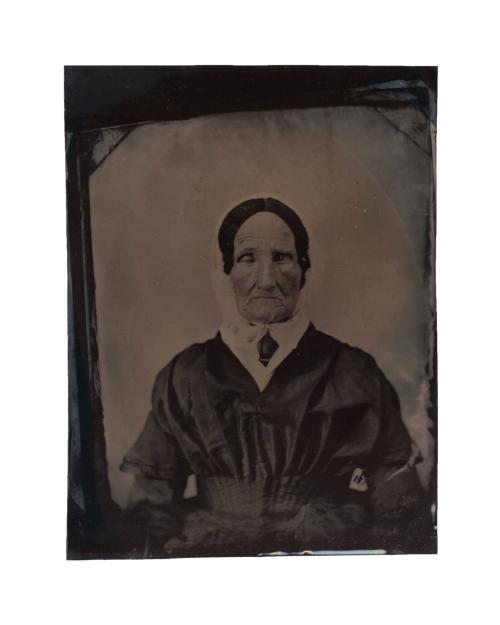 DescriptionWhole plate tintype, printed off-center on Japanned iron.