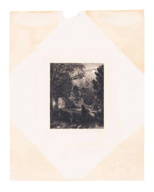 Label TextIn a moonlit scene, a shepherd guides the last sheep into the fold, assisted by his children and dog, before retiring to his thatched cottage for Christmas. Landscape painter Samuel Palmer took up etching at age 45 upon returning to London after living for a period in Italy.Exhibition HistoryTMA The Painter Was a Printmaker: June 23 - Sept. 9, 1984. TMA, Storytelling in Miniature, October 7, 2011-March 4, 2012.