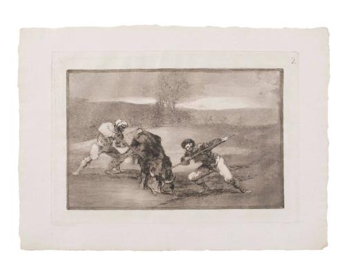 Otro modo de cazar pie. (Another way of baiting the bull) (From "Tauromachios" - No. 2)