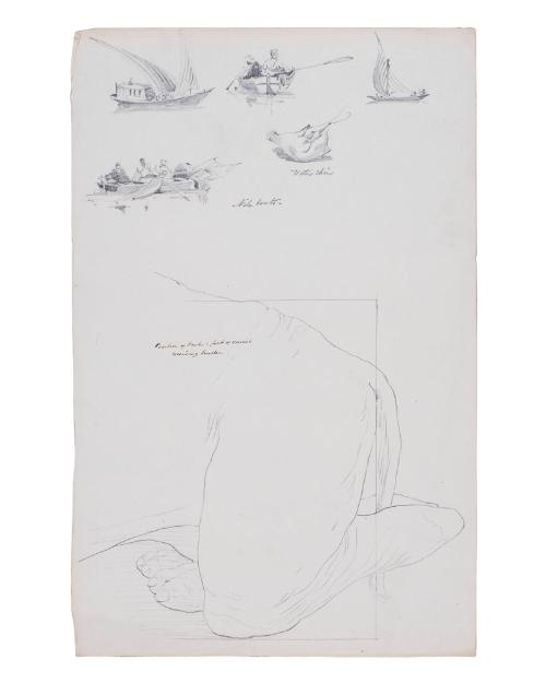 Sketches: Nile Boats; Waterskin; Position of Hocks & Feet of Camel Receiving Burden