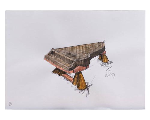 Preparatory Drawing for Steinway Concert Grand Piano and Bench: Proposal "B" for Piano Only