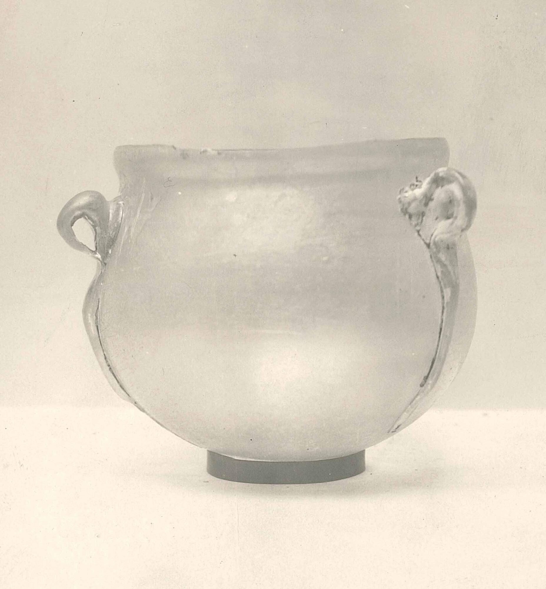 MediumMedium thick glass; free blown, tooled, applied handles