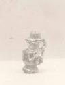 DescriptionTranslucent dark glass. Globular body decorated with applied zigzag glass threads. One thread around middle of neck. One handle. Spirals on spine very fine and not smoothed. Body zigzag thread very thin. Rim coil halfway down neck. Blue. Exact hue cannot be determined because of weathering.