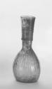 DescriptionThis light olive glass bottle, made between the 3rd and 5th centuries CE, has a pear-shaped body with thirty ribbed, slightly S-shaped corrugations. The tall neck is decorated with ten spirals of thin glass thread. The bottle was shaped in a mold and expanded by blowing, with the neck finished separately.