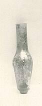 DescriptionThis small glass bottle was made in the 3rd to 4th century CE. It was shaped by hand from thin, pale green glass and has a narrow neck and a body that narrows to a pointed tip.