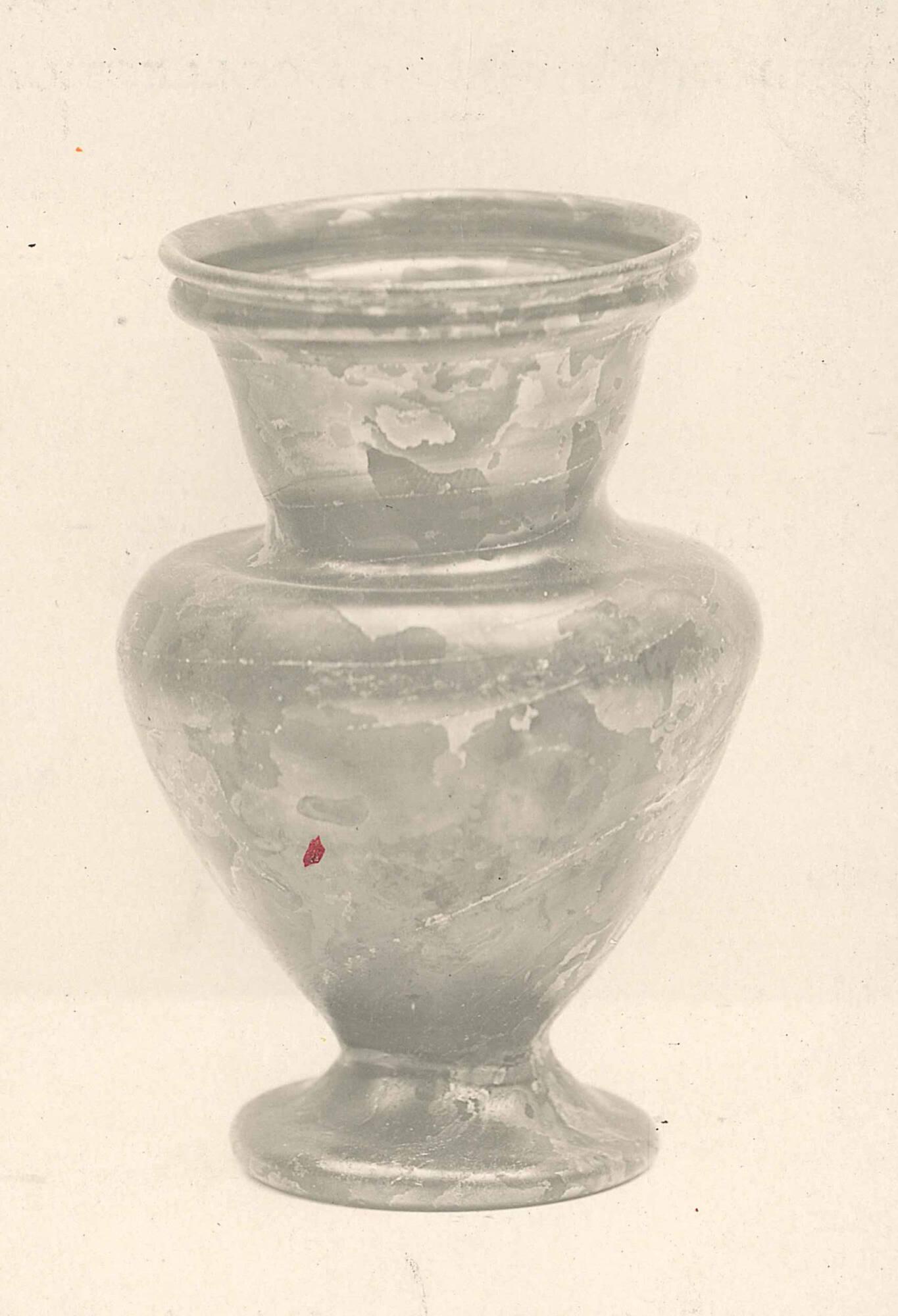 DimensionsH: 4 3/8 in. (11.2 cm); Rim Diam: 2 1/2 in. (6.3 cm); Body Diam: 3 in. (7.6 cm); Base Diam: 2 1/16 in. (5.2 cm)