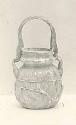 DescriptionThis bulbous jar (Jar Class I F 2 a) is free-blown and tooled using thin glass. The fabric cannot be determined because of weathering. The glass is transparent natural pale green (10 G 6/2) with translucent similarly colored handles and thread. The pontil mark is about 1.6 cm in diameter. Excess glass at the tips of the side handles is folded back against the top of each handle. The jar has a collar rim, rounded in flame, with an open cutout below, a deeply concave neck, a sloping shoulder, and a bag-shaped body with its greatest diameter near the base. The base is round. Two angular coil handles are applied to the shoulder, touched down to the side of the cutout, and attached to the side of the rim. A curved basket handle, made from a heavy coil with a round cross-section, is applied to the top of one side handle and attached to the top of the other. On the lower part of the body, a large thin zigzag thread with fourteen segments continues for one and a half revolutions above and over the zigzag.