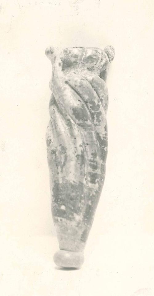Rod-tooled and twisted. Excess glass at tips of handles clipped off.