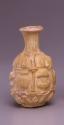 DescriptionThis opaque white hexagonal bottle is made of medium thin glass. The fabric cannot be determined because of weathering. The neck and rim were free blown, while the body was blown into a three-part mold composed of three vertical sections, corresponding to MCT IV in Stern’s typology. The mold seams between panels 2 and 3, 4 and 5, and 6 and 1 meet off-center on the underside of the base. The mold edges between panels 1 and 6 and between 4 and 5 are misaligned. The relief is crisp. This vessel belongs to the Vessels Type, Series A1, Generation A1a.