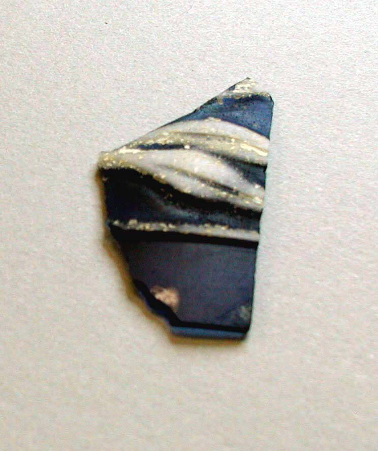 DescriptionThis curved fragment of cameo glass, possibly from a vase, is carved in opaque white glass over a translucent cobalt blue ground. The relief decoration features part of a floral motif. The carving is executed in low relief using the cameo technique.