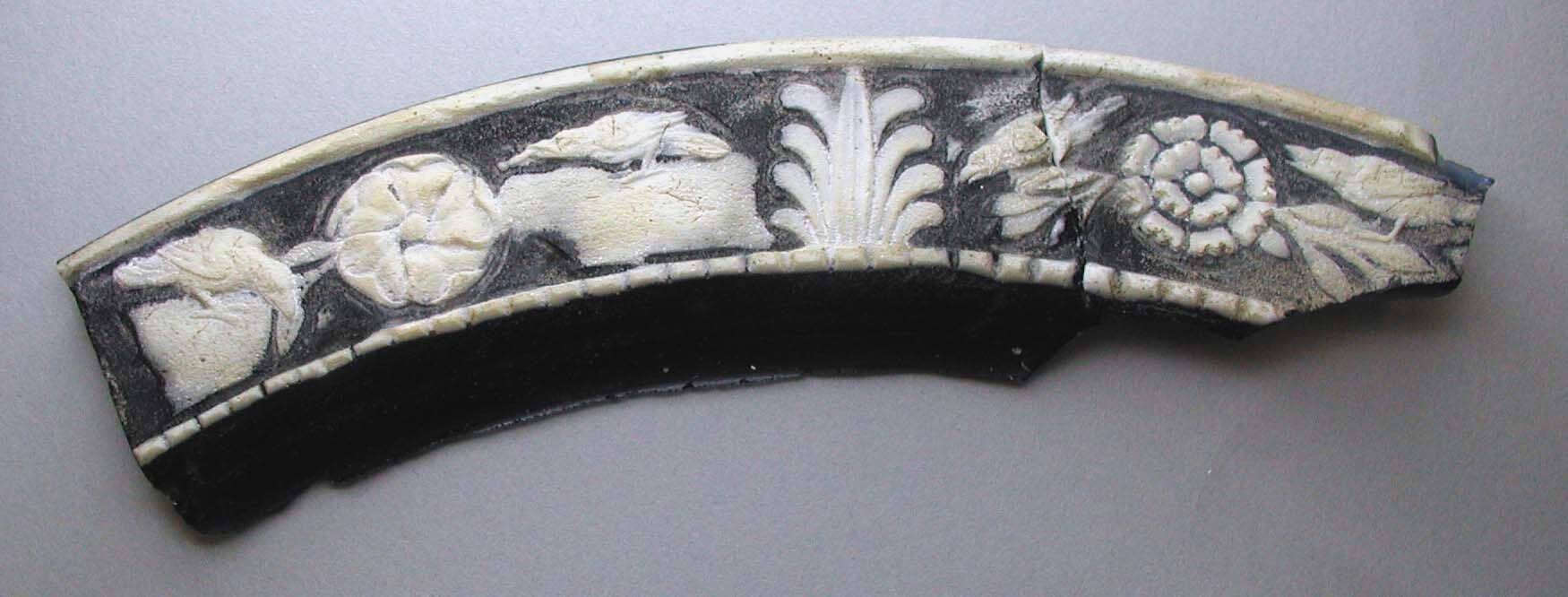 Label TextOpaque white decoration on translucent blue glass. Broad, flat rim fragment from a large, shallow dish featuring acanthus rosettes, palmette sprays, curling tendrils, and birds perched on branches or rocks. This fragment belongs to the same vessel as Acc. Nos. 1923.1601, 1923.1606, and 1923.1607, which together provide a more complete understanding of the dish’s original design. Acquired by Edward Drummond Libbey in 1919 from the family of Thomas Hulse Curtis. The Curtis collection was largely acquired in the 1890s from Charles Caryl Coleman, an American artist who resided first in Rome and later on the island of Capri. This collection history strongly suggests a findspot in or around Rome or the Bay of Naples.Published ReferencesSturgis, Russell, “The Coleman Collection of Antique Glass,” The Century Magazine, vol. 48, 1894, p. 556, fig. 10 [without since-attached adjoining fragment to the right].