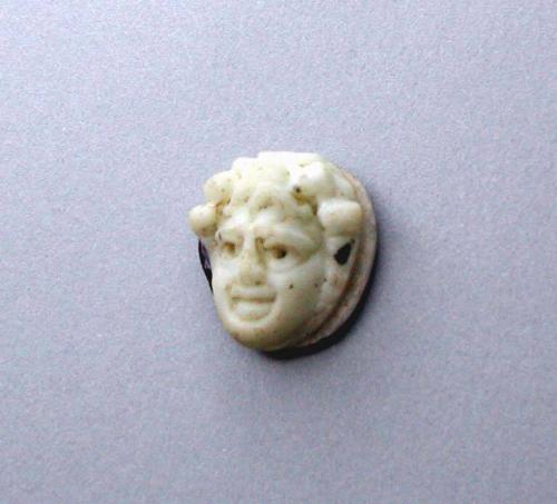 MediumHead of Medusa in opaque white glass on obsidian black.