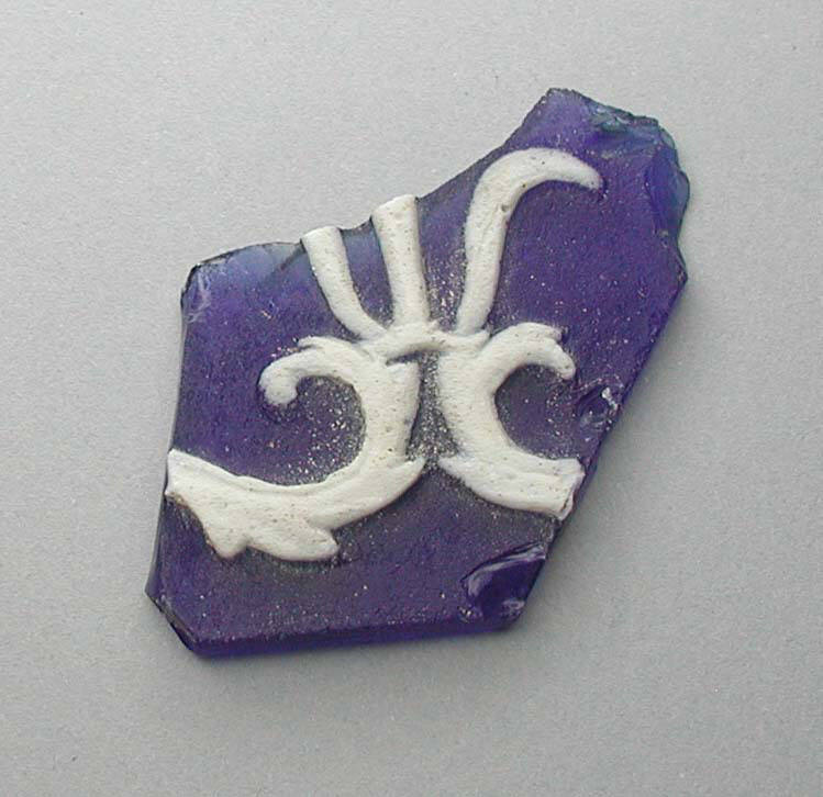 DescriptionThis fragment of cameo glass displays a conventional decorative motif in opaque white layered over a translucent cobalt blue background. The design is executed in cameo technique, with the white glass deeply cut to reveal the underlying blue layer.