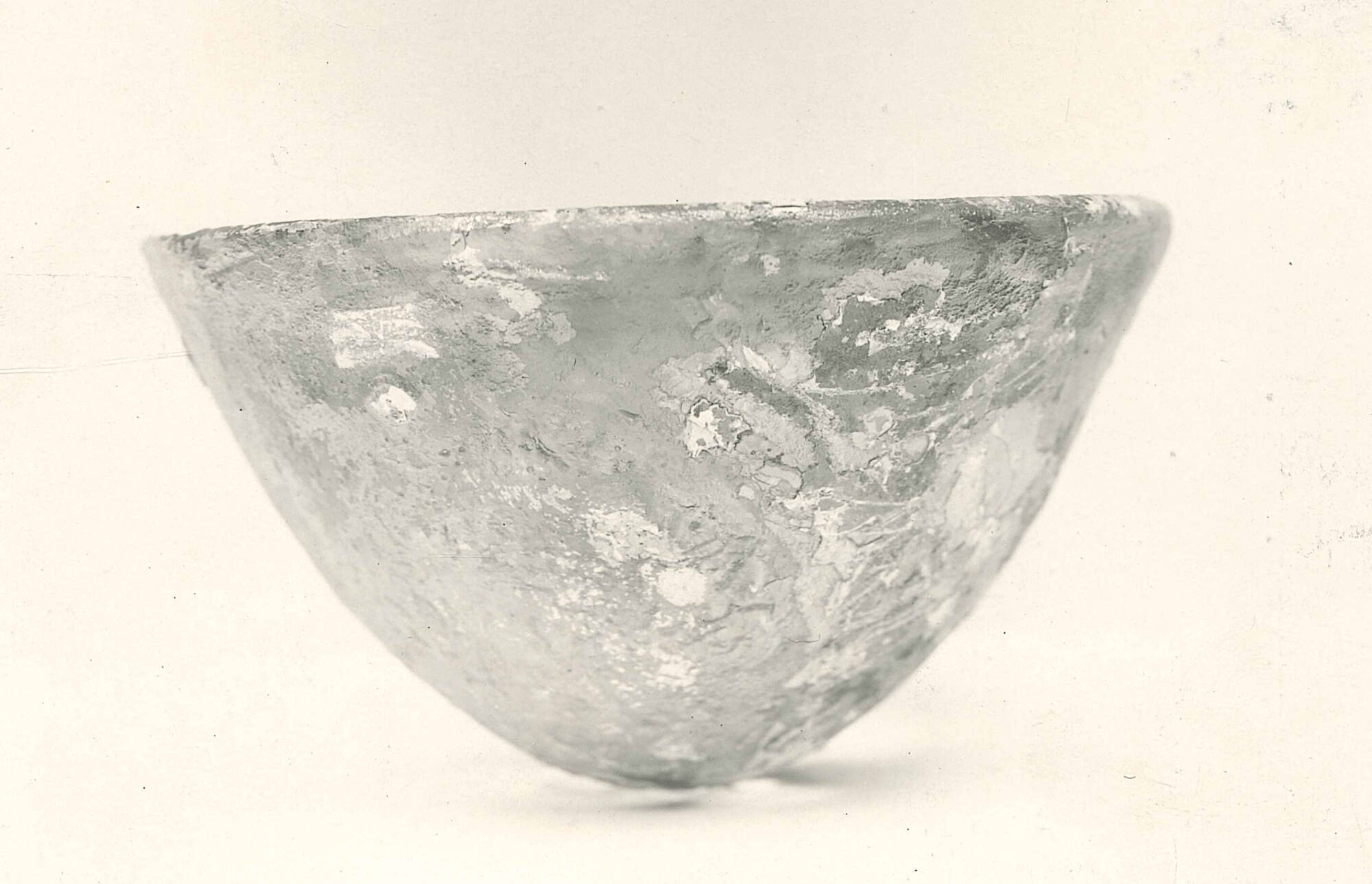 DescriptionThis yellow-tinged colorless bowl has a conical form with a sharply edged rim and sloping sides. Three grooves are cut into the inner surface below the rim. The bowl’s surface has been polished by different techniques.