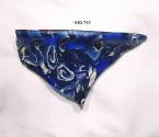 DescriptionFragment of rim and side of deep, footed ribbed bowl. Outsplayed rim with thick, rounded edge; almost vertical, straight side tapering downward. Composite mosaic pattern formed from polygonal sections of a single cane in a blue ground with an opaque white spiral. On the exterior, a single rounded rib set vertically on the body; the rib extends to the upper body.