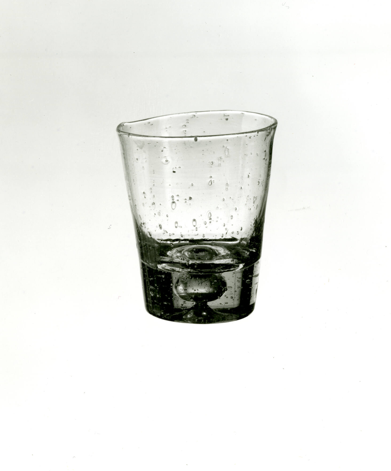DescriptionBlown, probably in a mold for form, and finished by tooling. Rim sheared very irregularly.
