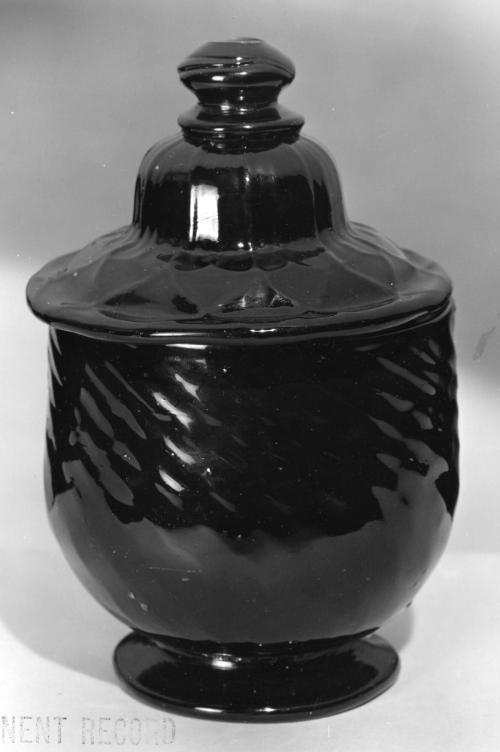 Published ReferencesMcKearin, George S. and Helen McKearin, Two Hundred Years of American Blown Glass, Garden City, N.Y., Doubleday, 1950; rev. ed., 1966, pl. 31 (sugar bowl blown of light yellow-green glass patterned in a 15-diamond mold that is the same form as this sugar bowl, its cover also domed but of a different form, and patterned in a 16-rib mold and expanded into wide-spaced vertical ribbing).