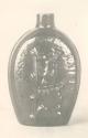 DescriptionGreen. Blown in a full-size two-part mold (McKearin G.V-5) that formed body and base. On both sides: a horse-drawn railway cart. The base is plain except for a keyed moldmark and a slightly rough pontil mark.