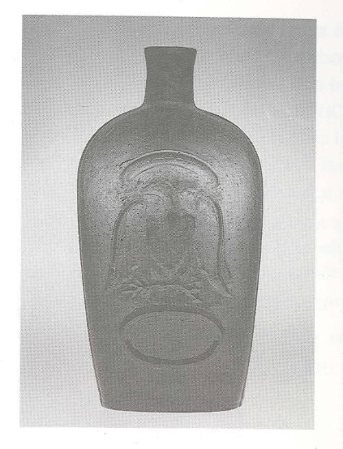 On both sides: a sketchy American eagle with banner above and a plain oval cartouche below. The base is plain except for a moldmark and a slightly rough pontil mark.