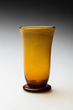 DescriptionRough pontil mark, in part rough ground to permit the piece to stand reasonably well. Yellow-amber non-lead glass; bowl blown and finished by tooling. Applied heavy foot.