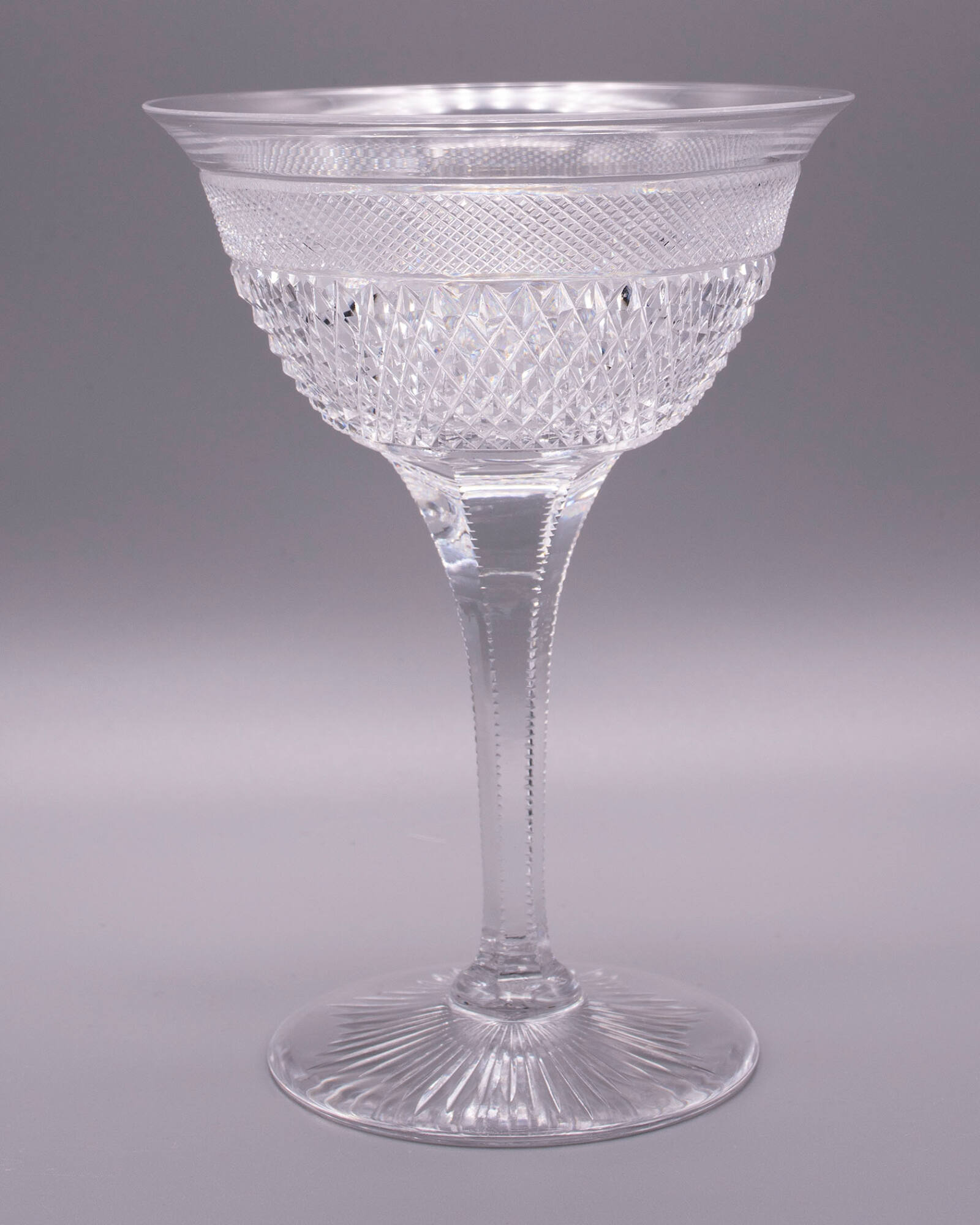 DescriptionBlank blown and finished by tooling. Cut in the same pattern as 1951.370. Underside of foot cut with a forty-eight-pointed star, made up of eight sections of six rays, each of different length.