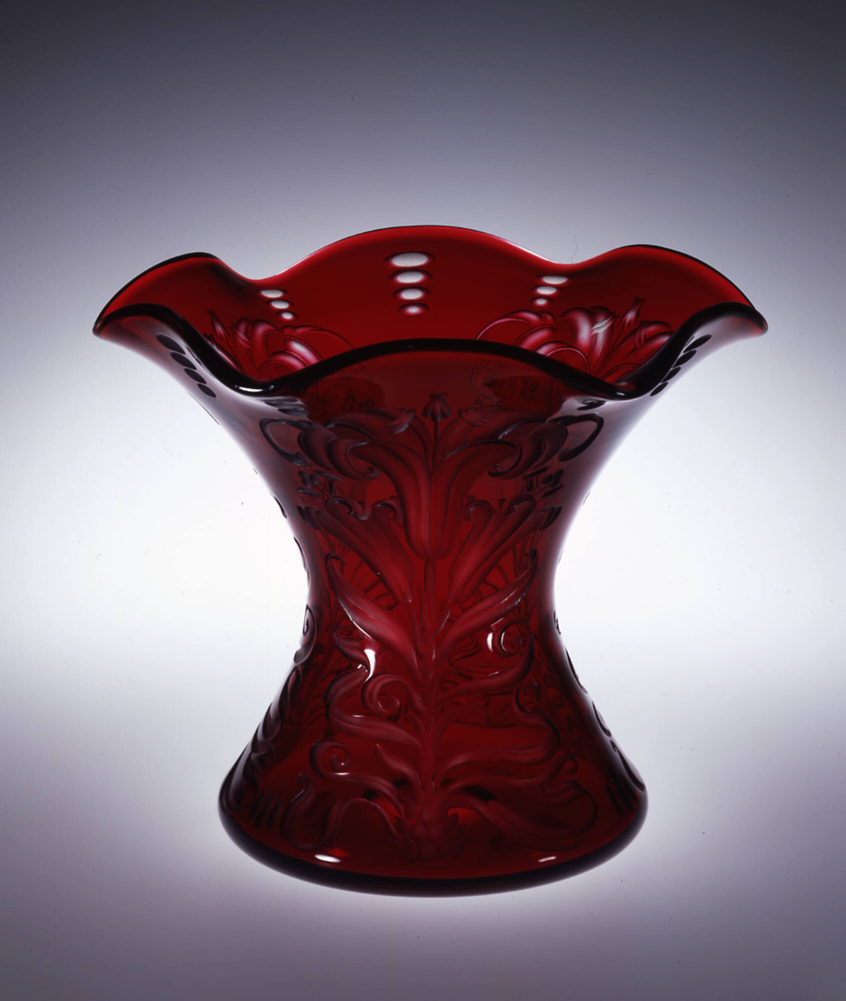 MediumColorless glass, overlaid with deep red glass.