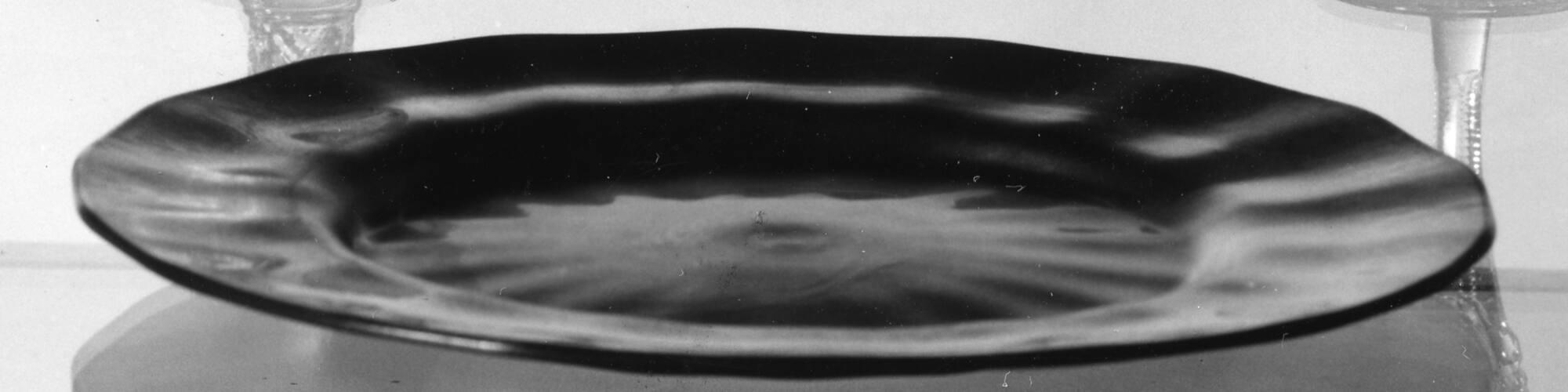 DescriptionBlown and optic-molded with eighteen ribs, then finished by tooling. Iridescent finish.