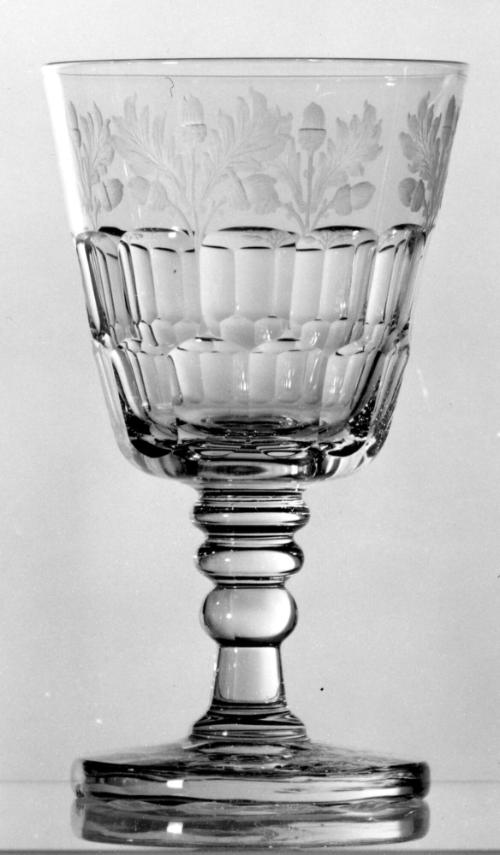 DescriptionMade in the same manner as 1959.141, but with a round foot and engraved with four sprigs of acorns and leaves.