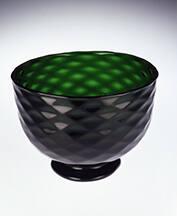 DescriptionBlown in a two-piece part-size mold patterned with eleven rows of fifteen lateral diamonds and one row of half diamonds at the plain rim. Expanded and finished by tooling. Short, irregular, circular sloping foot tooled from an applied gather. Rough, solid pontil mark.