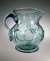 Label TextIn this masterful lily pad pitcher, one of the largest known, the tooled stems and pads, alternately tall and short, embrace and enhance the robust body. Their somewhat shaky irregularity contrasts with the even threading applied around the neck, while the plain disk foot provides a firm base that does not compete with the decorative impact of the body.Published ReferencesMcKearin, George S., "Wistarberg and South Jersey Glass," Antiques, vol. 19, October 1926, p. 279, right, and p. 180, center (Reprint 1, pp. 108, 109); (two closely related pitchers).