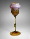 Label TextAs an artist, designer, and tastemaker, Louis Comfort Tiffany (1848–1933) altered the course of American decorative arts in many fields, including glass. Initially he explored the role of glass within architecture. Dissatisfied with the materials available for making stained-glass windows, Tiffany began experimenting with glass in the 1870s. As early as 1880, Tiffany had applied to patent the process of making luster or iridescent glass produced “by forming a film of a metal or its oxide, or a compound of a metal, on or in the glass either by exposing it to vapors or gases or by direct application.” Tiffany called his entire line of vessel glass (as opposed to window or mosaic glass) “Fabrile,” an Old English word meaning hand-wrought. The name was intended to convey that each object was hand-blown and unique. In 1894 he changed the name to “Favrile.”Published ReferencesRogers, Millard F., Jr., "The Story of American Glass," Toledo Museum of Art Museum News, vol. 9, no. 3, Autumn 1966, pp. 51-70; rev. and reprinted as a Toledo Museum handbook, repr. p. 69