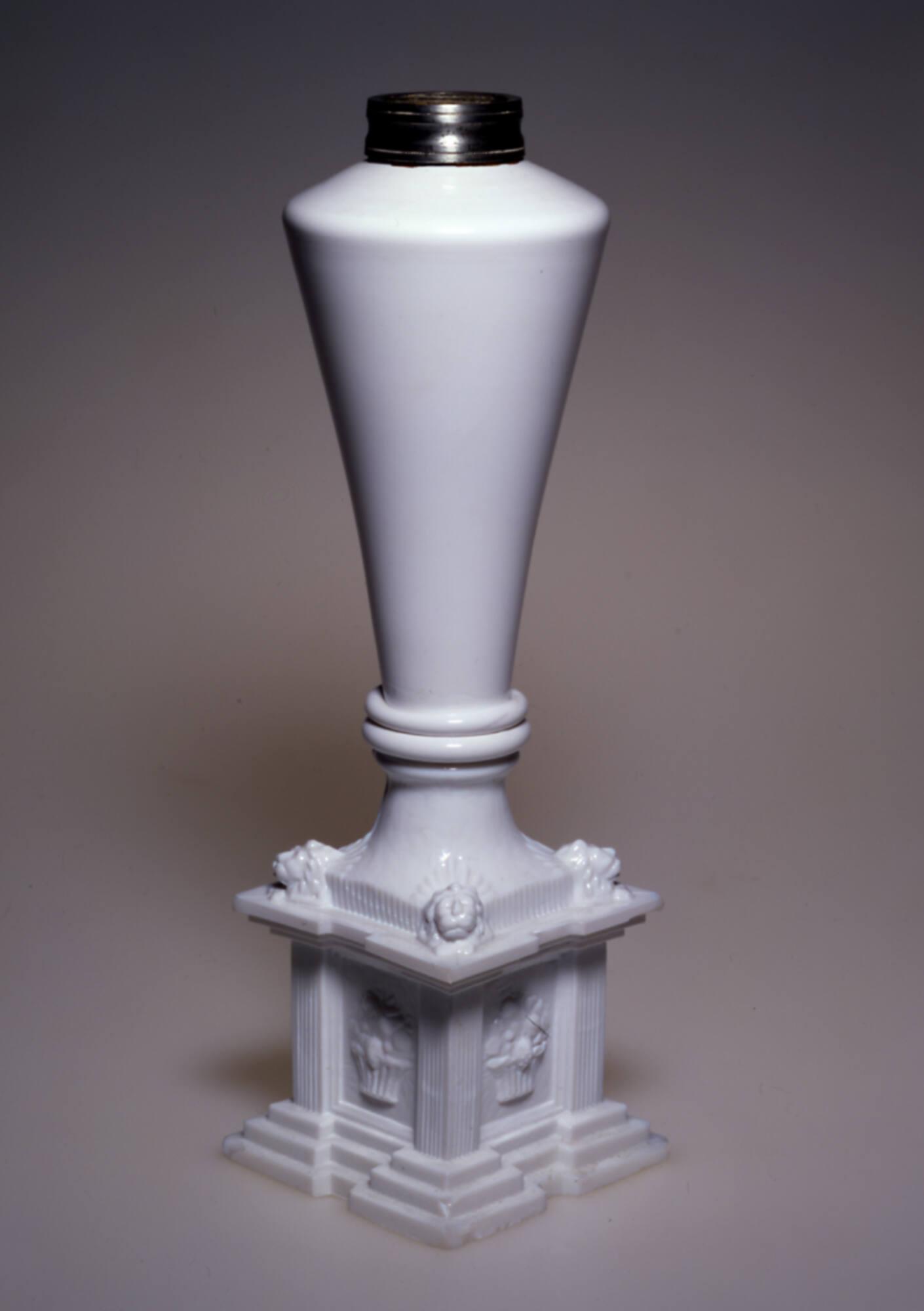 DimensionsH (with wick): 26.0 cm (10 1/4 in.); Base W: 8.0 cm (3 5/32 in.); Rim Diam: 3.5 cm (1 3/8 in.)