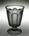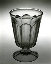 DescriptionPressed upright in a female mold of four vertical sections, with a plain base plate with a shallow dome that formed the underside of the foot, by a plain male plunger, with a cap ring that formed the rim and the area between it and the tops of the arches. The mold seams extend vertically from the lower edge of the foot along the seams of the flutes to the juncture of the arches. Rim fire-polished. Underside and outer edge of the foot ground and semipolished. No pontil mark.