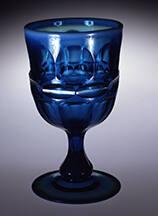 DescriptionPressed upright in a female coggle mold of three vertical sections bearing the Argus pattern by a plain male plunger, in conjunction with a male plug that formed a cylinder at the bottom of the stem that was reheated and tooled to form the foot, with a cap ring that formed the rim. Concave, polished pontil mark.