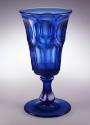 DescriptionEntire piece pressed upright in a female mold of two vertical sections bearing the Ashburton pattern that formed the bowl by a plain male plunger that formed the hollow interior, in conjunction with a second plunger working from below that formed the hollow cylinder at the lower end of the standard from which the foot was tooled after being reheated. Rim reheated and flared outward by tooling. Deep, broad polished pontil mark.