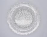 DescriptionPressed upside down over a plain male mold by a female plunger bearing the pattern. The piece rests on the sixteen bosses that form the peacock feather eyes.