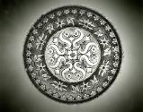 DescriptionPressed, probably upright, in a female mold bearing the pattern by a plain male plunger. Plain flat foot ring. What may be the shear mark is on the plain interior surface.