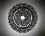 DescriptionColorless glass. Pressed, probably upside down, over a plain male mold by a female plunger bearing the pattern, or vice versa. It appears that no cap ring was used. Stuck up on a pontil rod and fire-polished. Pontil mark ground and polished.