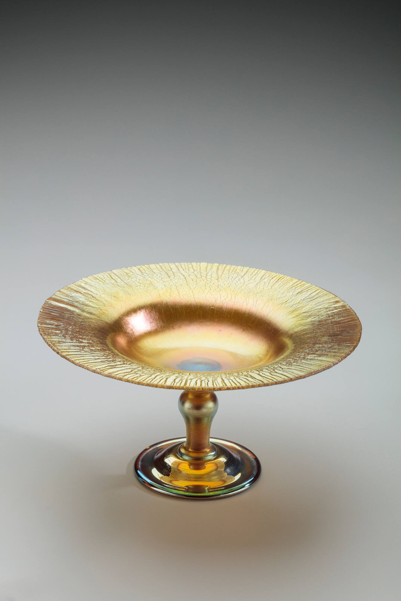 MediumGlass; blown and finished by tooling, applied tooled stem, applied blown and tooled foot with rim folded under