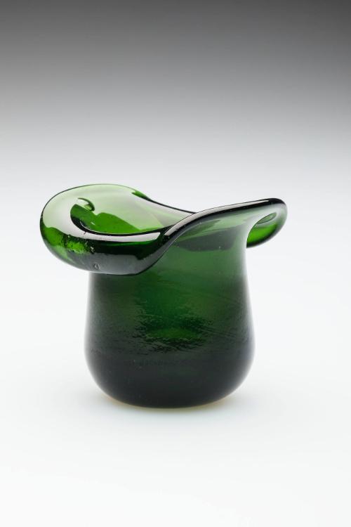 DescriptionBlown in a mold (McKearin G.II-18) of three vertical sections and a base plate (McKearin Diamond Type VIII). Lip and opening tooled to shape. Rough pontil mark.