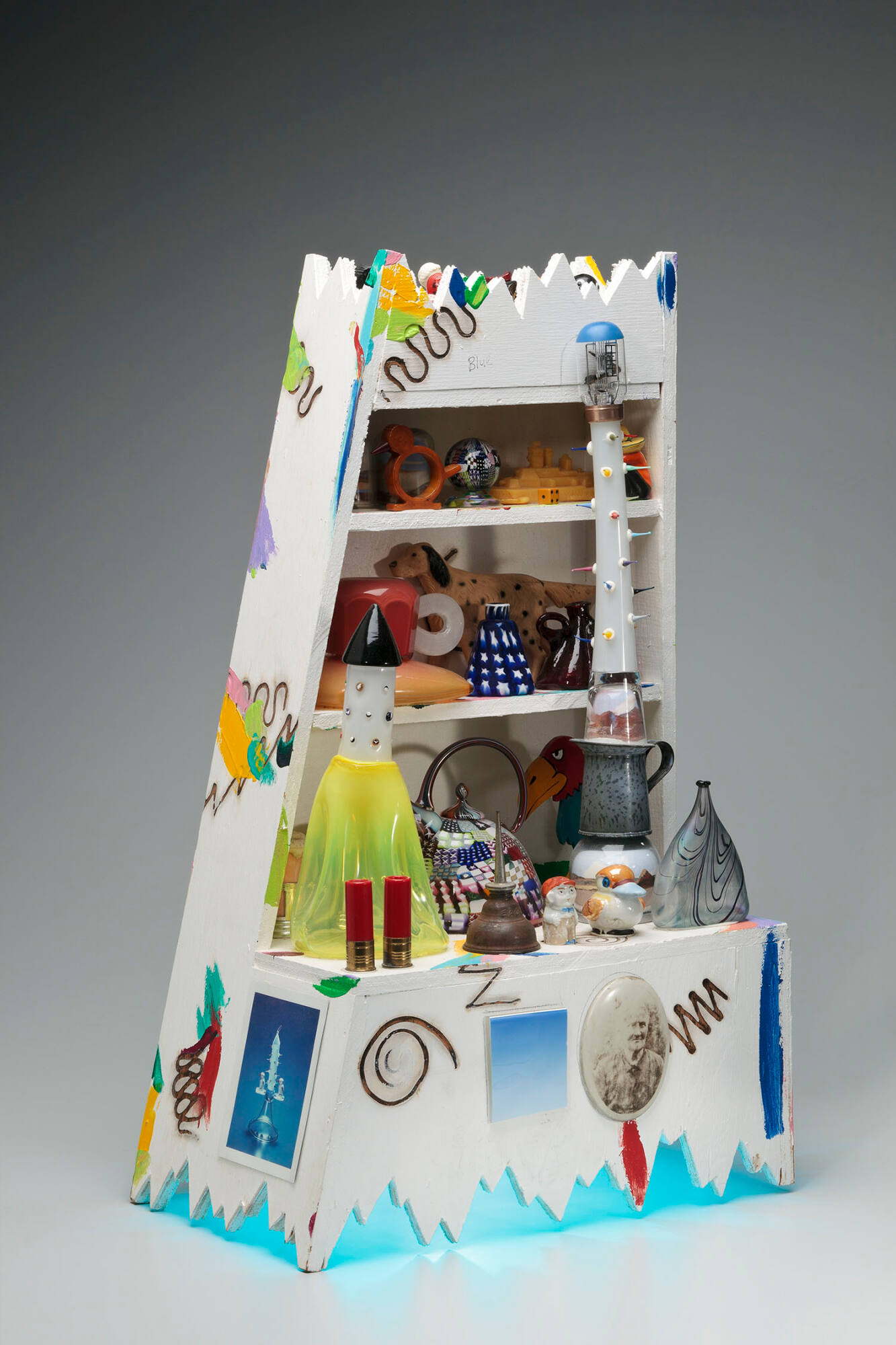 MediumPainted plywood, blown and fabricated glass, and found objects (including ceramics, Bakelite, enamel, photograph, light bulb, and sand).