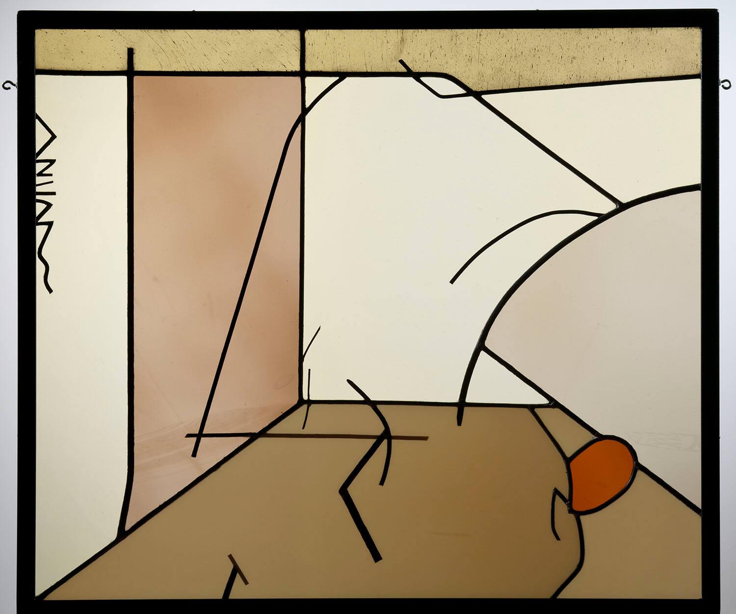 MediumGlass, leaded with lead appliqués and steel