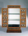 MediumPearwood cabinet and rosewood base on basswood (Tilia) carcass; silvered metal (brass?) fittings; press-molded colorless glass insets