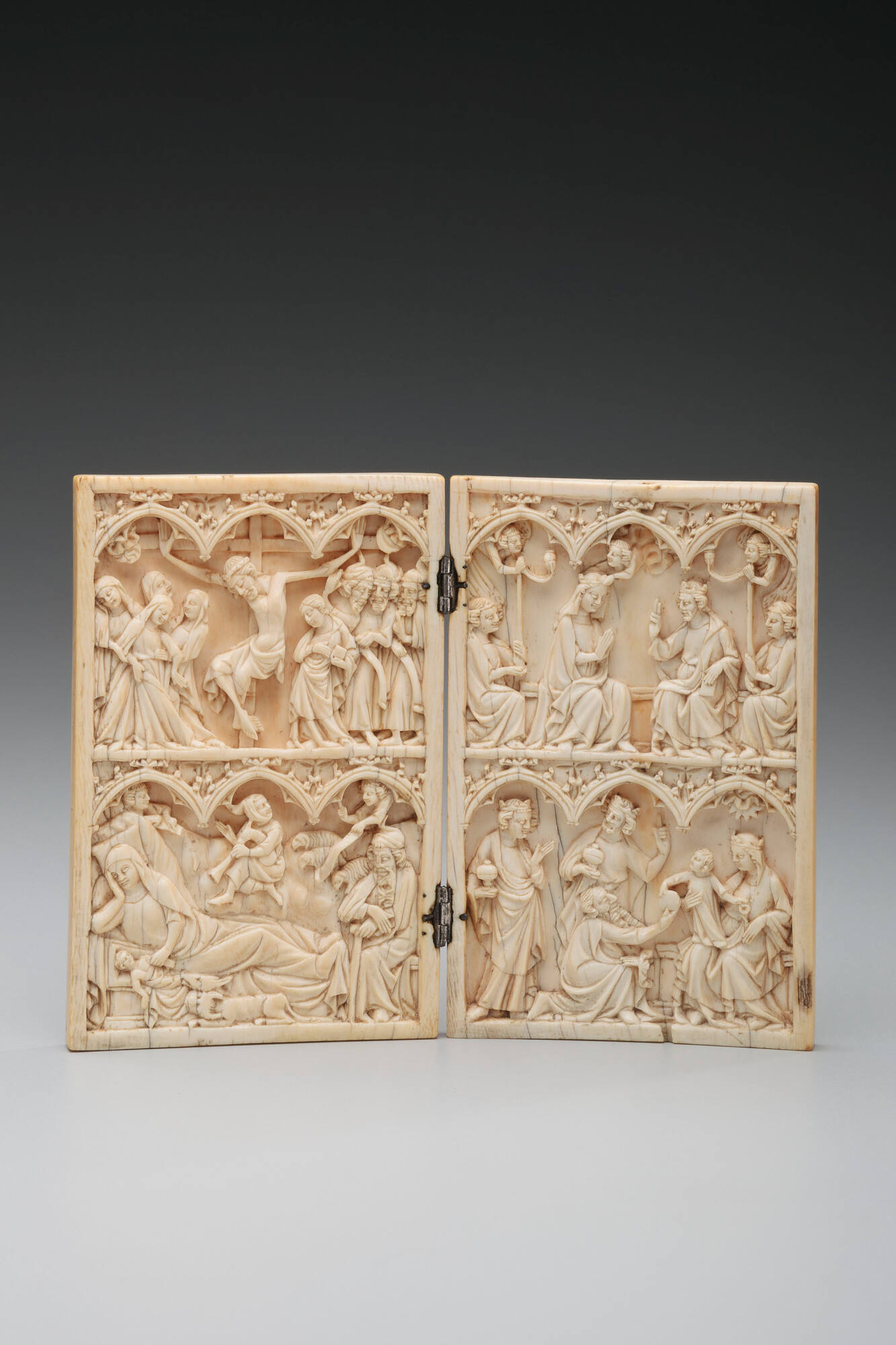 Diptych with the Crucifixion, Nativity, Coronation of the Virgin, and Adoration of the Magi