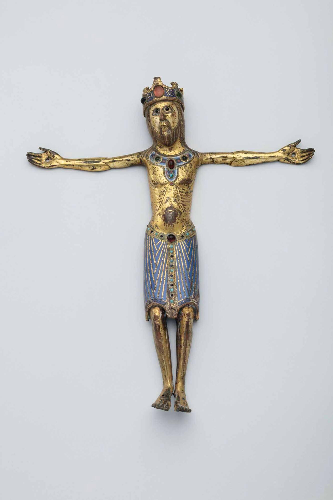 Label TextThis Christ figure was intended to adorn the center of a processional or altar cross. Decorated with gems, crowned, and with eyes open wide, Christ is shown alive and in full glory, triumphing over death.Published ReferencesMolinier, E., Sales catalogue for Paris sale, May 15-24, 1905, no. 151, illustrated.